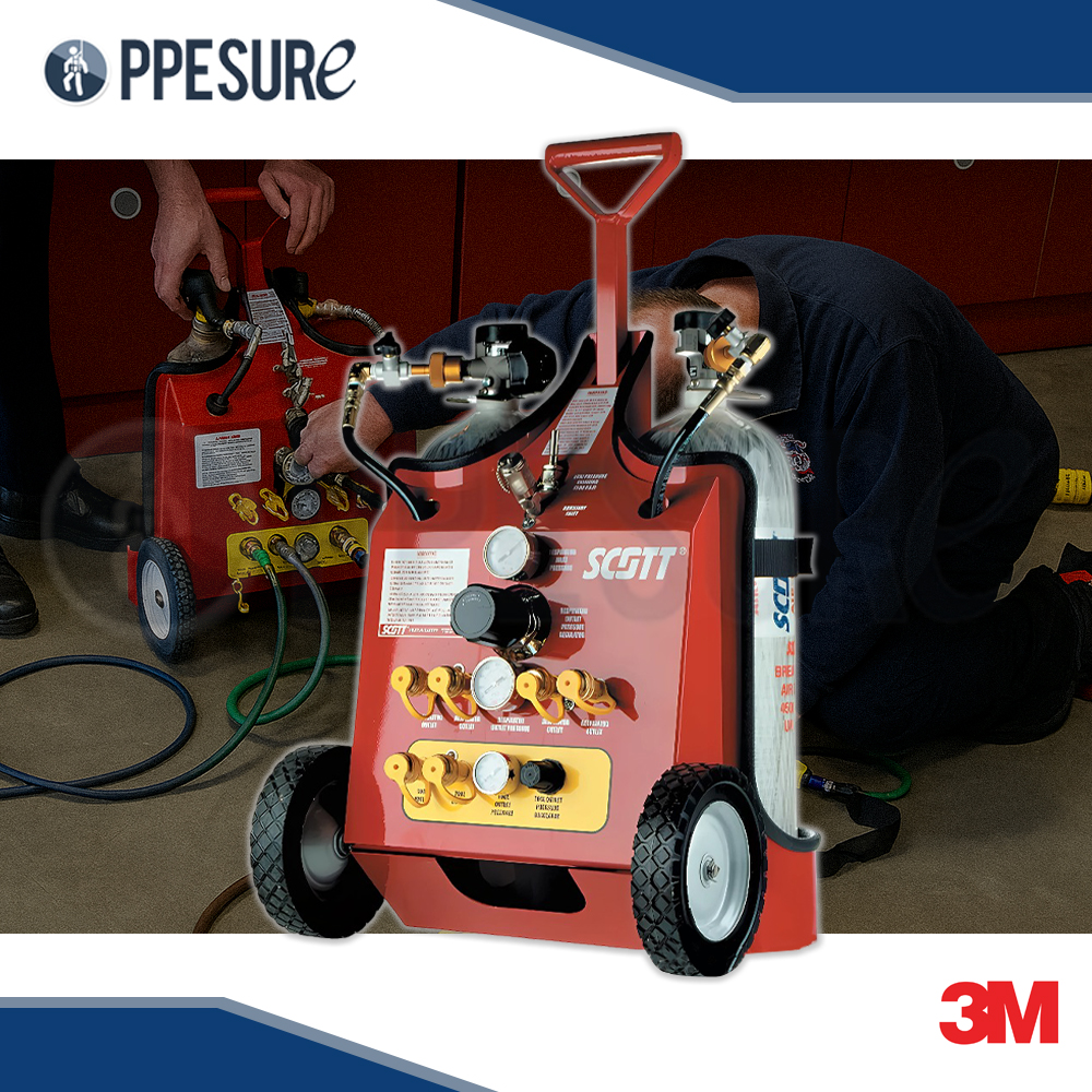 3M™ Scott™ Mobile Air Cart เป็นชุดจ่ายอากาศแบบเคลื่อนที่ พร้อมถังอากาศแรงดันสูงขนาด 6.8 ลิตร สำหรับจ่ายอากาศให้กับผู้ปฏิบัติงานในพื้นที่อับอากาศ , งานกู้ภัย หรือสถานการณ์ฉุกเฉินที่ต้องการอากาศบริสุทธิ์ ตัวชุดมีล้อเลื่อนและมือจับสำหรับเคลื่อนย้ายสะดวก ใช้งานได้ต่อเนื่อง และสามารถต่อใช้งานพร้อมกันได้หลายจุด