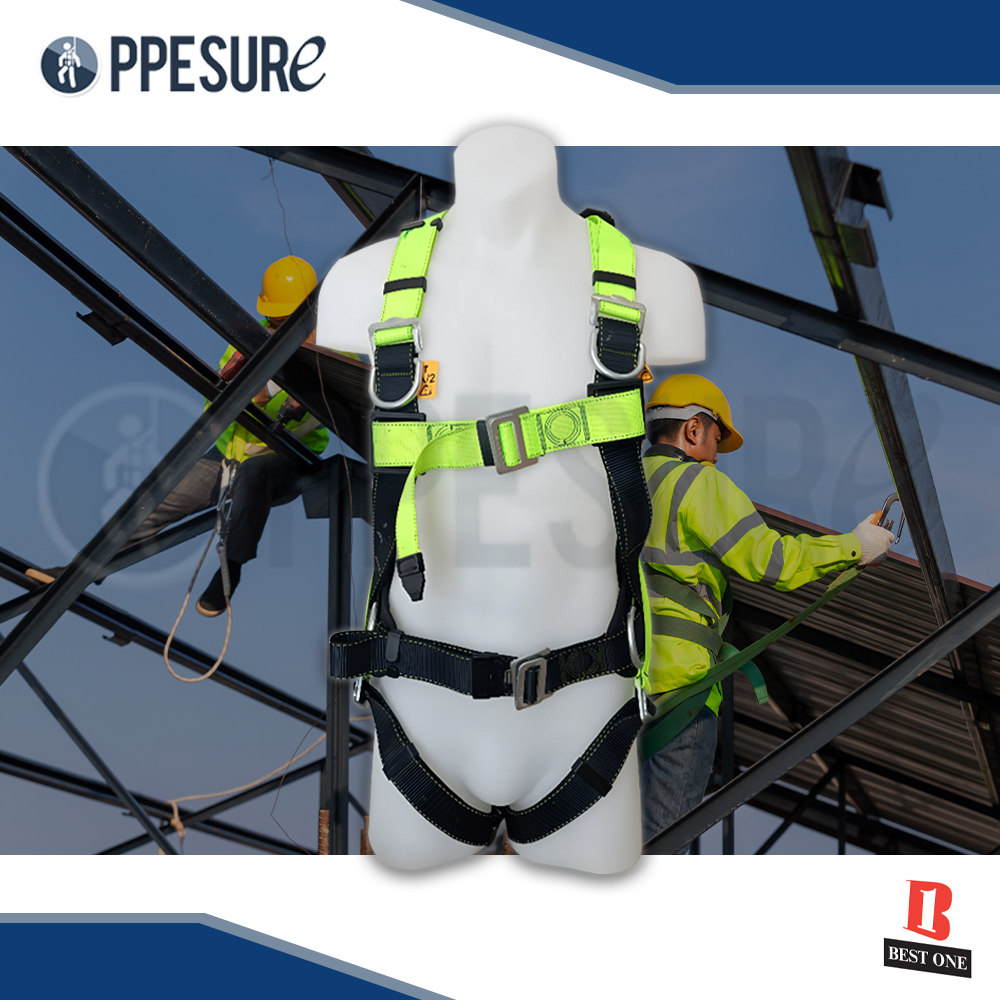 ชื่อสินค้า : เช่า เข็มขัดนิรภัยเต็มตัว รุ่น Best One สีเขียวสะท้อนแสง สำหรับงานที่สูง