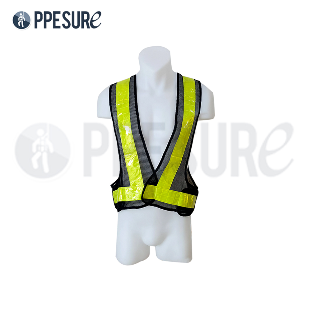 ชื่อสินค้า : เช่า เสื้อนิรภัยสะท้อนแสง สีดำ แถบสะท้อนแสงสีเหลืองมะนาว แบบตาข่าย DRY