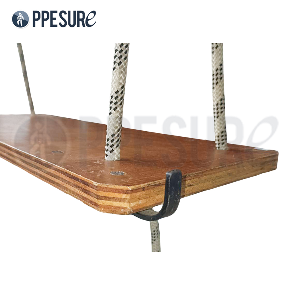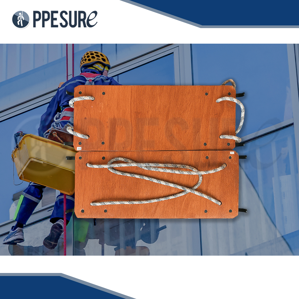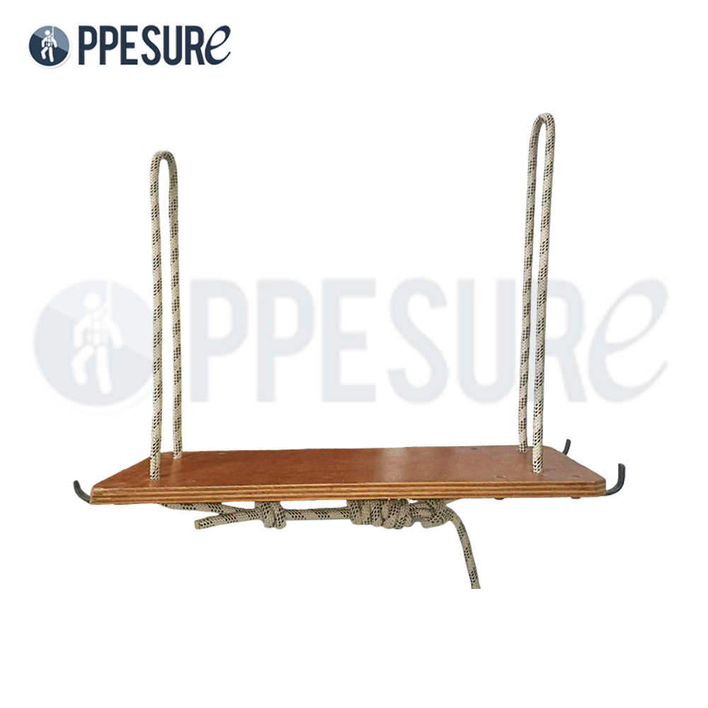 แผ่นรองนั่งไม้สำหรับโรยตัว ใช้รองรับน้ำหนักขณะทำงานที่สูง มาพร้อมเชือกและตะขอเกี่ยว เหมาะสำหรับงานโรยตัวและซ่อมบำรุงโครงสร้าง
